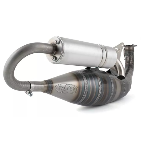 El escape 2Fast 100cc para Yamaha Aerox y MBK Nitro es un sistema de escape de alto rendimiento diseñado específicamente para motores Minarelli horizontales preparados para competición.